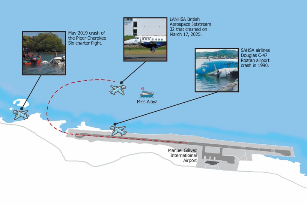 The most deadly crash until now took place in March 1990, when SAHSA airlines Douglas C-47 crashed on Roatan on a flight from Guanaja. An investigation determined that the aircraft, manufactured in 1944, encountered strong crosswinds and veered off the airport runway, and crashing into the sea.