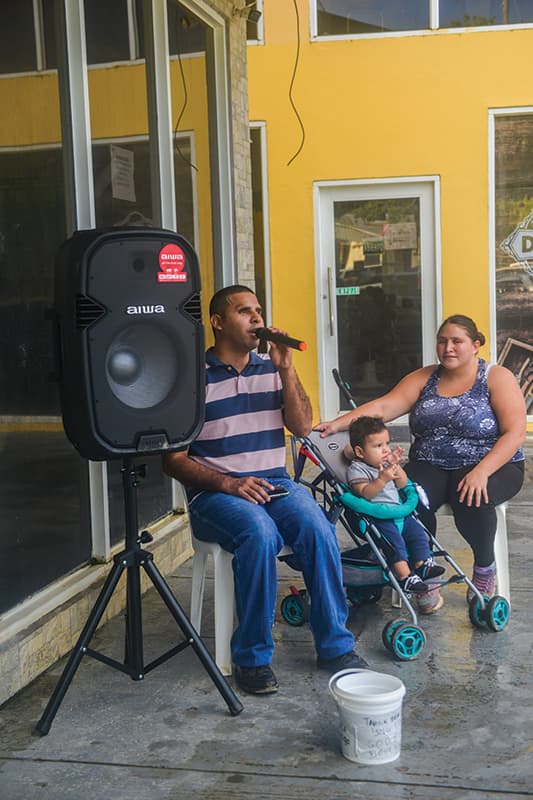 The musicians began performing on the street in West End and gained other contracts. The couple also performs in front of Taquería Raúl in West End. For one hour, from 3 to 4 p.m., the duo plays at the Ramírez Store in Sandy Bay. They have their toddler son next to them. José García, another blind musician, joins the duo for two evenings a week at Blue Marlin. Their toddler son, Schneider, accompanies them. “With this, we sustain ourselves, thanks be to God,” Aguilar says.