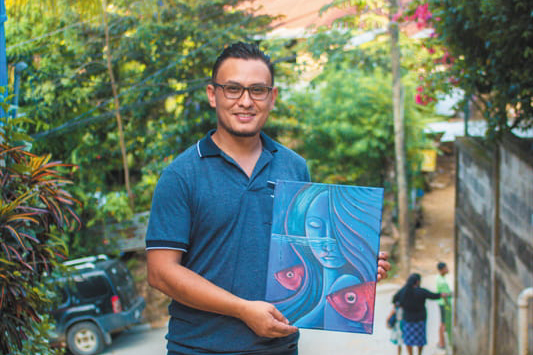 Walter James and Dwin Osly Bodden are like a father and a son artistic duo. Walter, 68, plays the guitar and Dwin, 33, sings